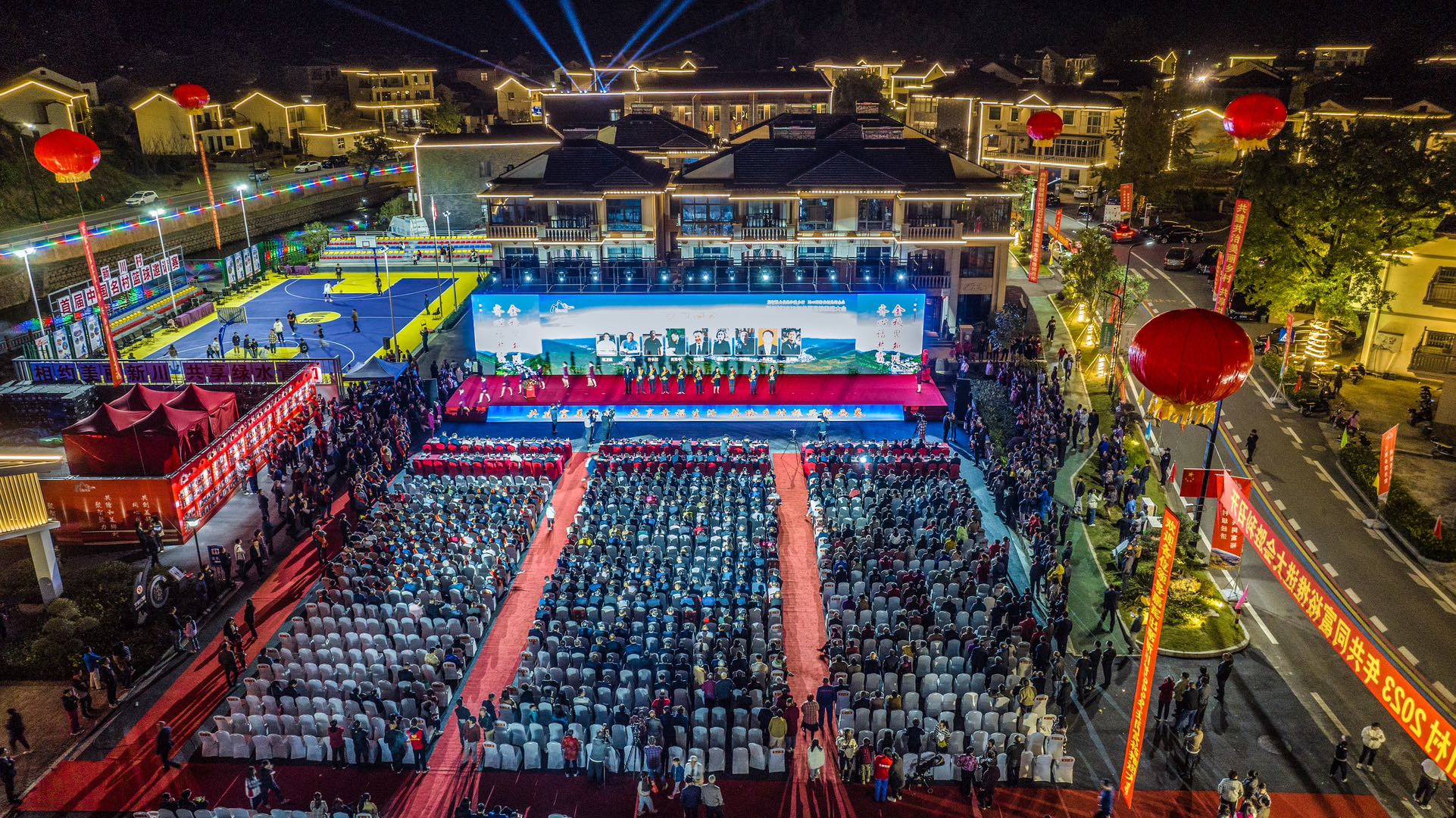 “嘟——”哨声吹响,篮球场上一片沸腾,经过激烈的角逐,安徽凤阳小岗村队终以73:45的成绩夺得首届中国名村篮球邀请赛冠军,一场全国名村“以球会友”的盛会就此落幕,而属于新川村民的盛会却才刚刚开始。